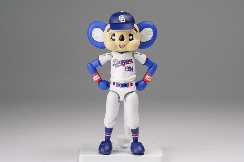 Doala, the mascot for the Chunichi Dragons baseball team, gets in the Plafia plastic kits line-up