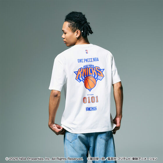 ONE PIECE × NBA T-Shirts PORTGAS.D.ACE × NEW YORK KNICKS (White - XL)
