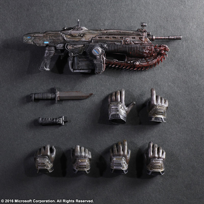 Comes with display base, 6 interchangeable hands, knife and Lancer MK2 Assault Rifle