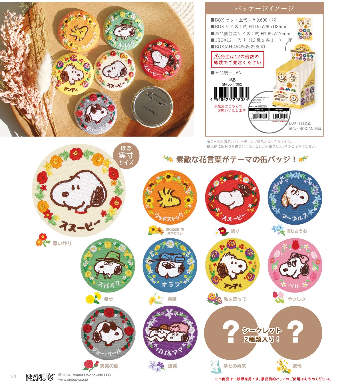 PEANUTS SNOOPY TM Secret Language of Flowers Embroidery Can Badge Box(12 pcs)