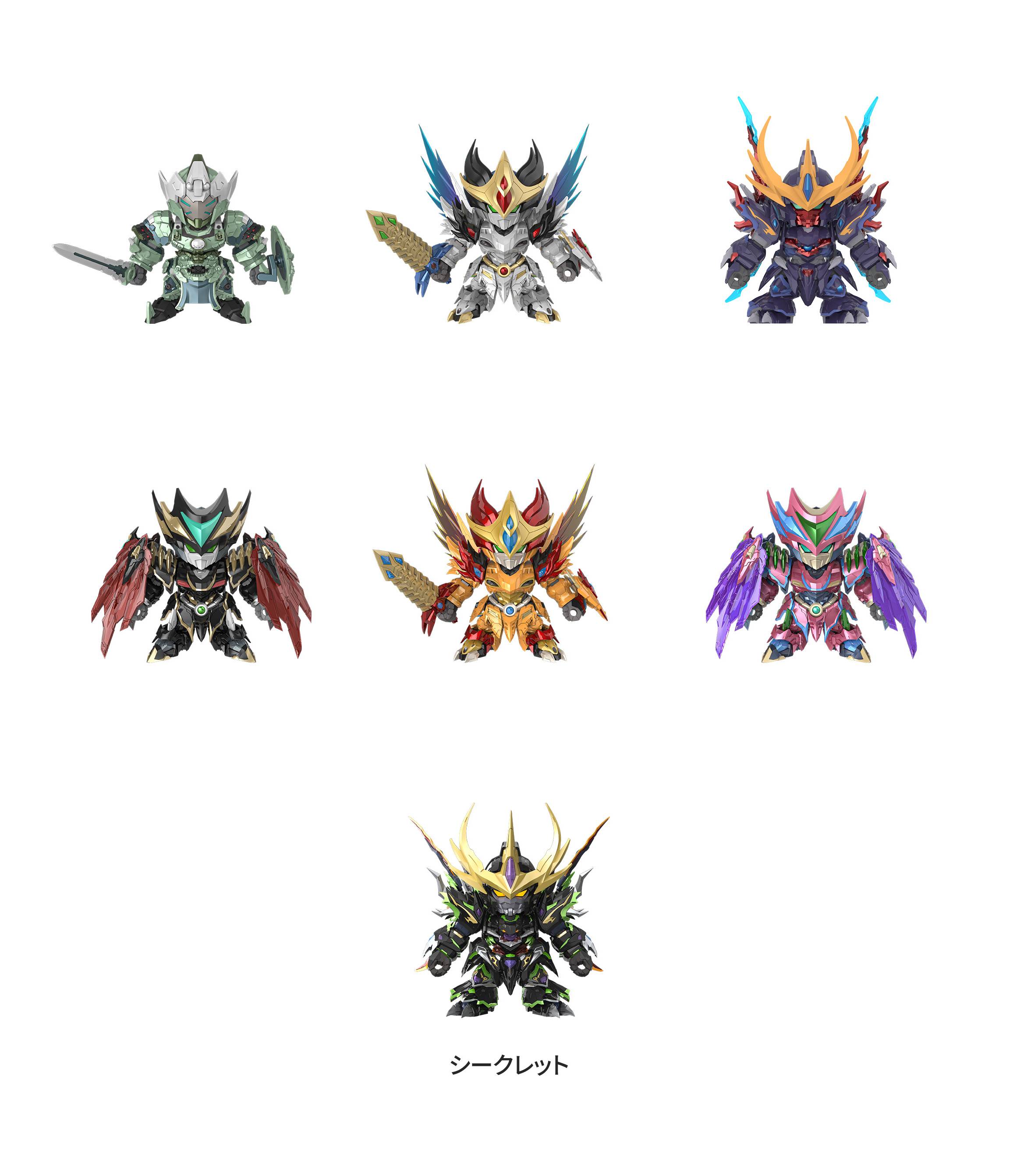 The complete line-up is made by 6 normal mecha plus a secret character