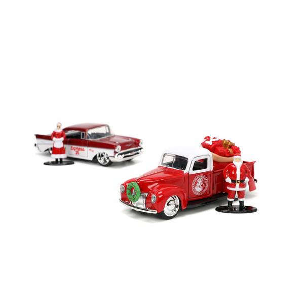 1941 Ford Pickup 1957 Bel Air Santa 2-Car Set with Santa Mrs. Claus Figures
