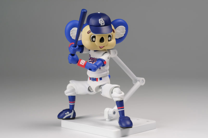 Doala, the mascot for the Chunichi Dragons baseball team, gets in the Plafia plastic kits line-up