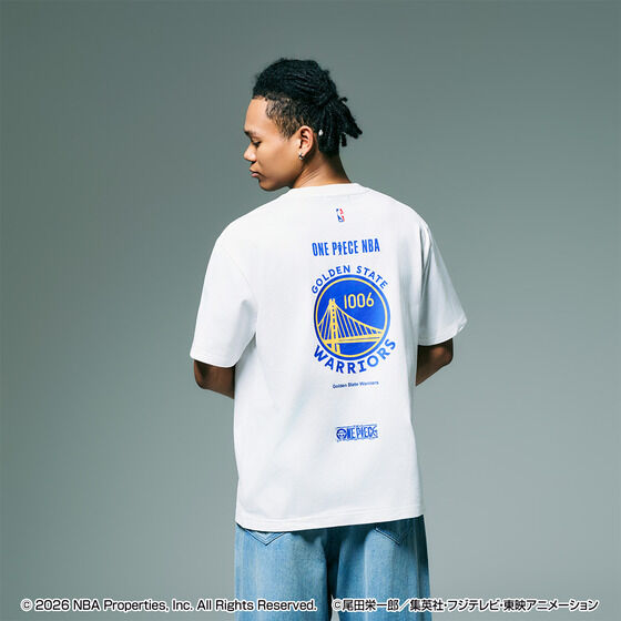ONE PIECE × NBA T-Shirts TRAFALGAR.LAW × GOLDEN STATE WARRIORS (White - XL)