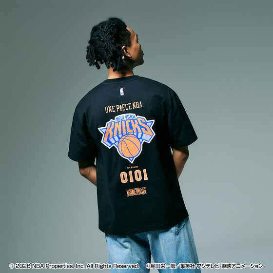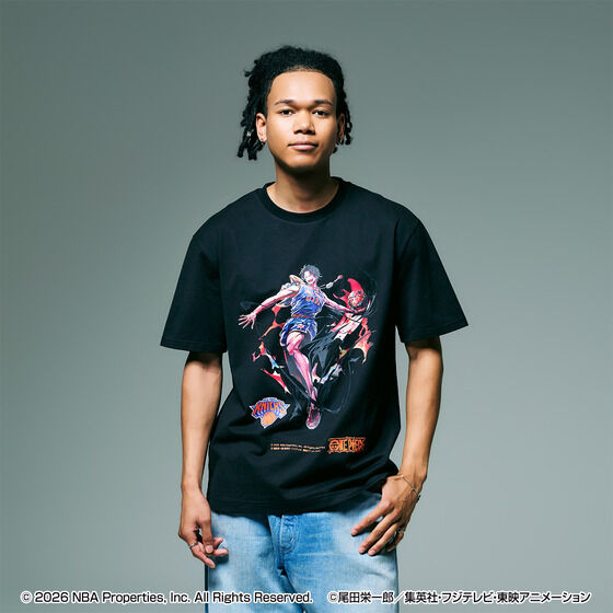 ONE PIECE × NBA T-Shirts PORTGAS.D.ACE × NEW YORK KNICKS (Black - S)