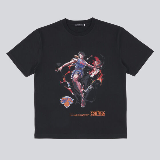 ONE PIECE × NBA T-Shirts PORTGAS.D.ACE × NEW YORK KNICKS (Black - XXL)