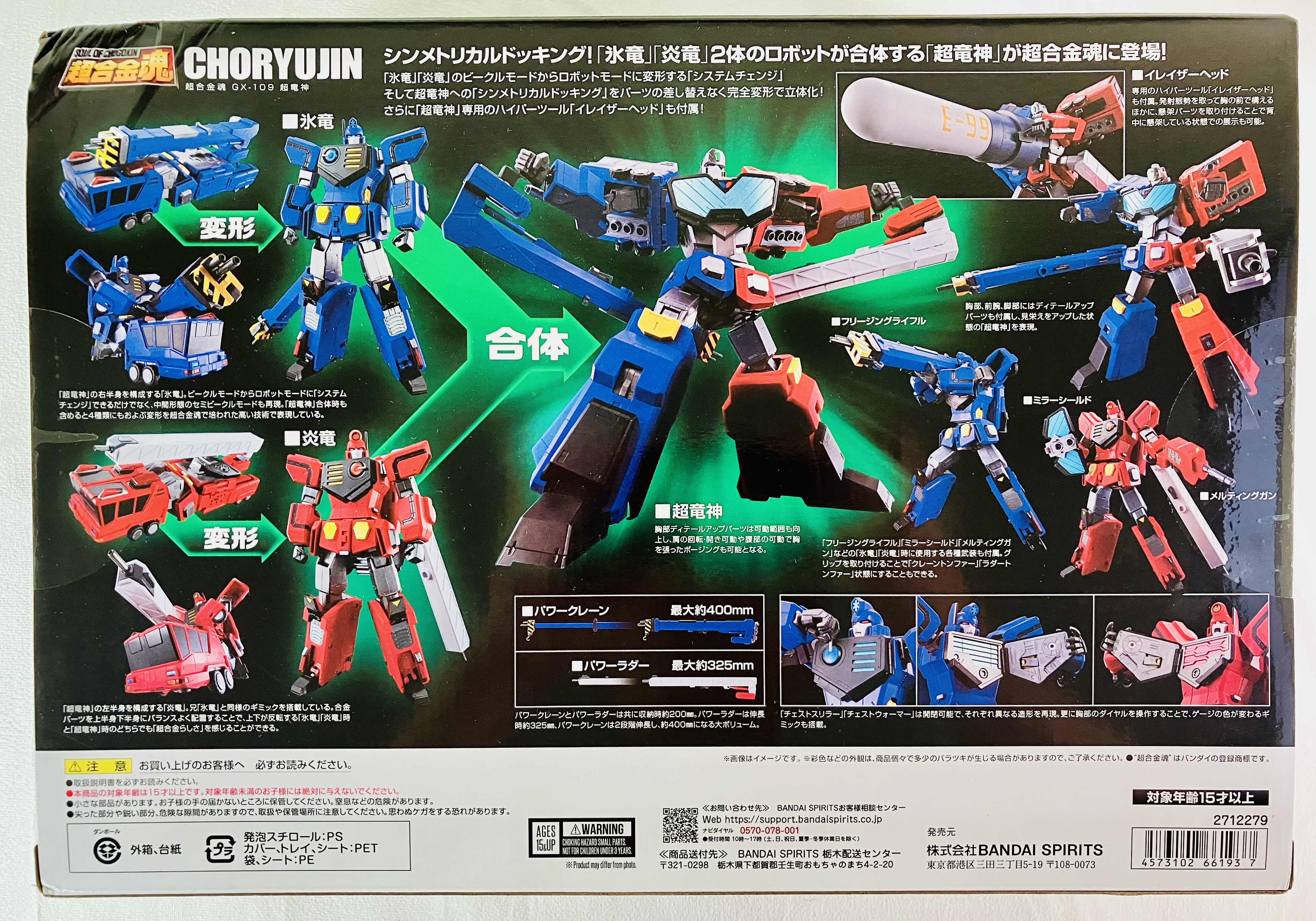 Comes with display base, 2 alternative face plates for both Ice Dragon and Fire Dragon, 4 interchangeable hands for each robot, 7 interchangeable hands for Choryujin, Eraserhead and weapons.