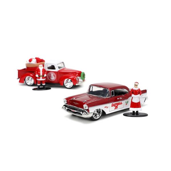 1941 Ford Pickup 1957 Bel Air Santa 2-Car Set with Santa Mrs. Claus Figures
